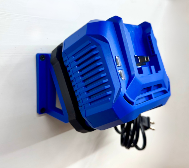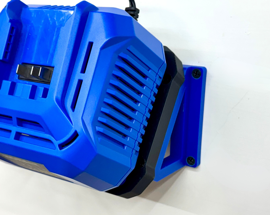 This mount is designed to hold your Kobalt 24v Max Battery Charger, Model #KCH 2401-03. Top Clamp ensures your charger wont slide around! Blue is a very close match but not 100% the exact same.